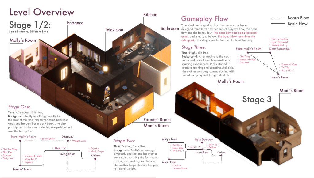 Body shaming has become a serious social issue long since. It has brought some people devastating sufferings and even brought them to suicide. Inspired by That Dragon, Cancer, an indie narrative game sharing the grief experience of losing child, I developed this game to raise public awareness on body shaming by telling the tragedy of the girl, Molly, who suffer body shaming throughout her life. Her story is based on real persons and events.